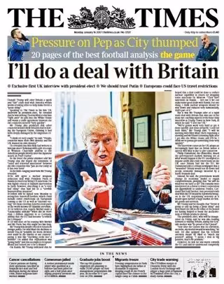 Trump, que tomará posesión del cargo el próximo viernes, se ha referido además a la salida de Reino Unido de la UE y ha asegurado que otros países seguirán a los británicos por ese camino. En ese sentido, ha asegurado que Reino Unido votó a favor del 'Brexit' porque querían defender "su propia identidad" y ha argumentado que "al final será algo estupendo".