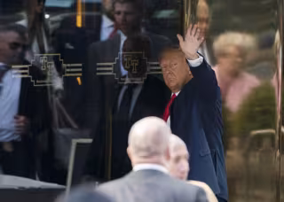 Al llegar al tribunal de Manhattan, Trump ha bajado del vehículo en el que se ha desplazado y se ha detenido unos instantes antes de entrar al edificio para saludar a los curiosos que, en la lejanía, se reunían a la espera de ver un hecho histórico.