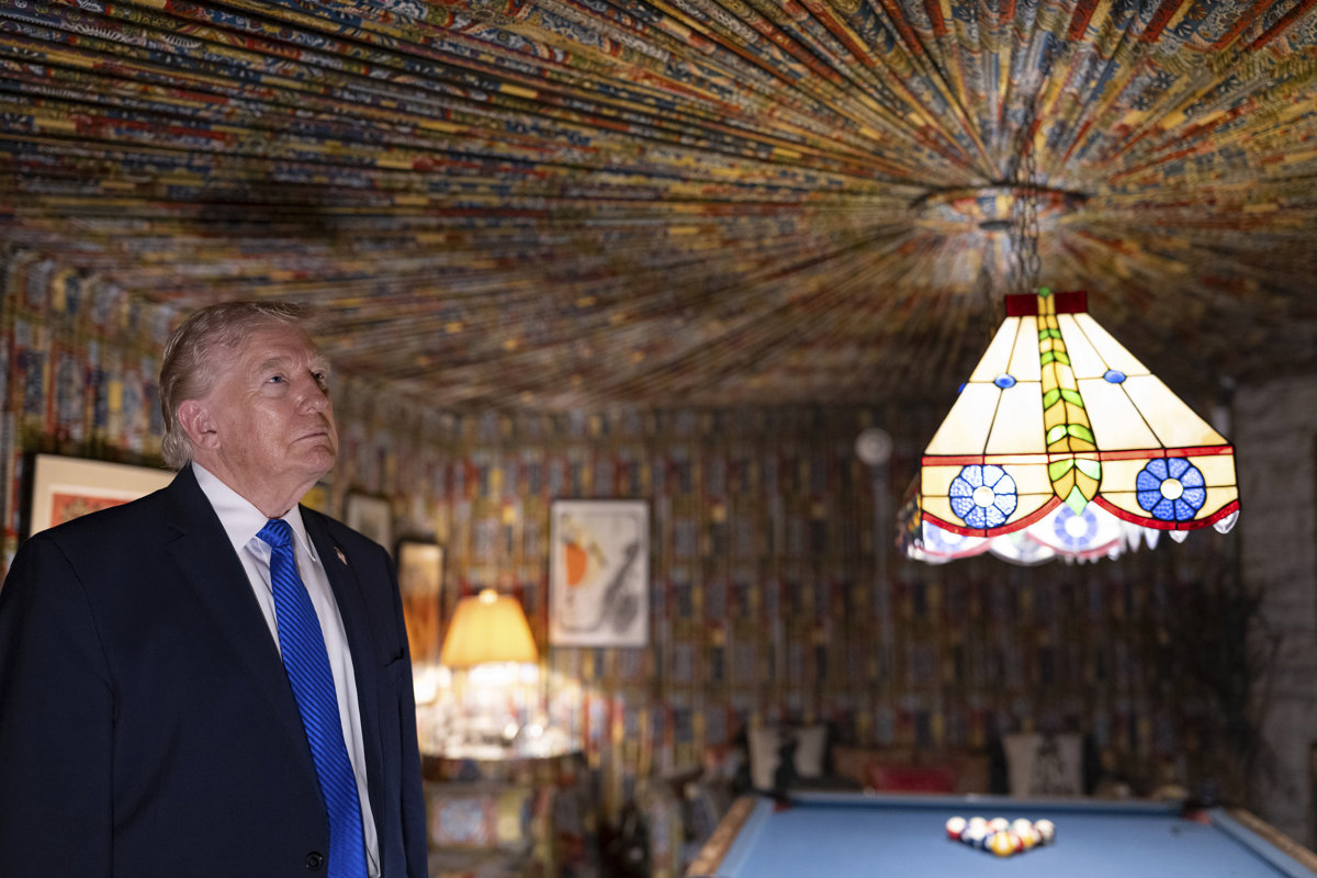 25 March 2026, US, Memphis: US President Donald Trump tours the famous Jungle Room during a visit to Graceland, the home of music legend Elvis Presley. Photo: Molly Riley/White House/Planet Pix via ZUMA Press Wire/dpa - Molly Riley/White House/Planet P / DPA