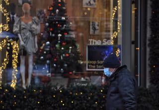 Un hombre con mascarilla ante un escaparate en Kiev - SERGEI CHUZAVKOV / ZUMA PRESS / CONTACTOPHOTO