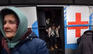 01 April 2022, Ukraine, Zaporizhia: Displaced people fleeing the Russian invasion of Berdyansk, Mariupol and other besieged cities evacuate through Zaporizhzhya. The International Committee of the Red Cross successfully brought a convoy of evacuees from d - Carol Guzy/ZUMA Press Wire/dpa