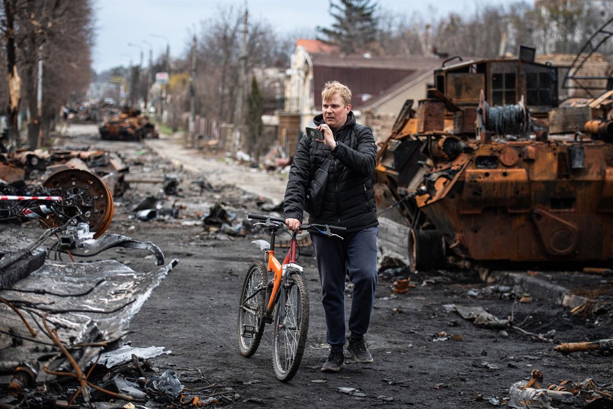 Un hombre toma fotos de la destrucción al paso de las tropas rusas por Irpin. - Laurel Chor/SOPA Images via ZUMA / DPA