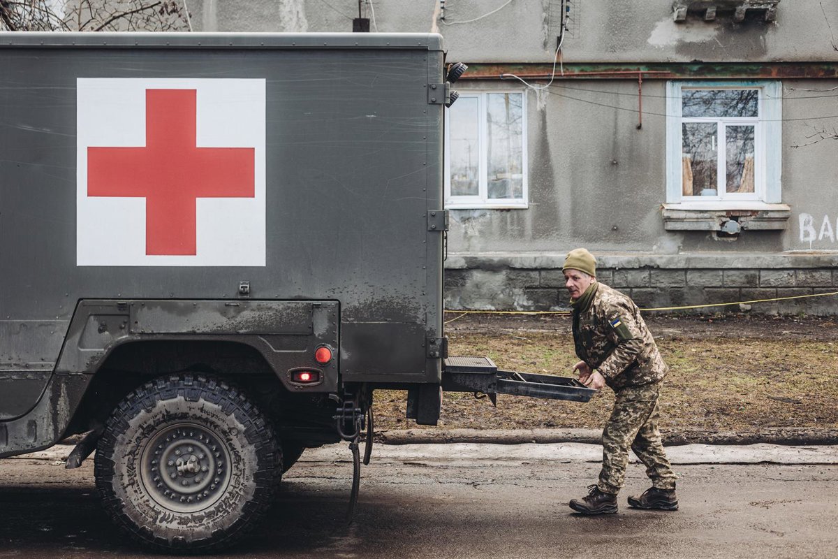 Archivo - Un soldado del ejército ucraniano coloca una escalera en una ambulancia militar, a 23 de febrero de 2022, en Chasiv Yar, Oblast de Donetsk (Ucrania) - Diego Herrera - Europa Press - Archivo