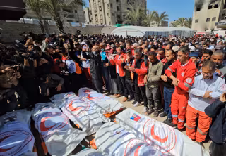 La Media Luna Roja Palestina cifró en 15 los cadáveres recuperados de una fosa común en la que fueron enterrados junto a sus vehículos tras un ataque por parte del Ejército de Israel en los alrededores de Rafá. Las autopsias revelan que las víctimas fueron tiroteadas en la parte superior del cuerpo, lo que demostraría que fueron "asesinados deliberadamente" por los militares israelíes.