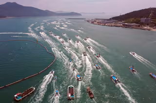 Imagen de archivo de una protesta de pescadores surcoreanos por la liberación de agua radiactiva tratada procedente de la central de Fukushima. - -/Yna/Dpa