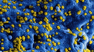 Archivo - Imagen microscópica electrónica de escaneo digitalmente coloreada (SEM) de las partículas del coronavirus MERS. - NIAID - Archivo