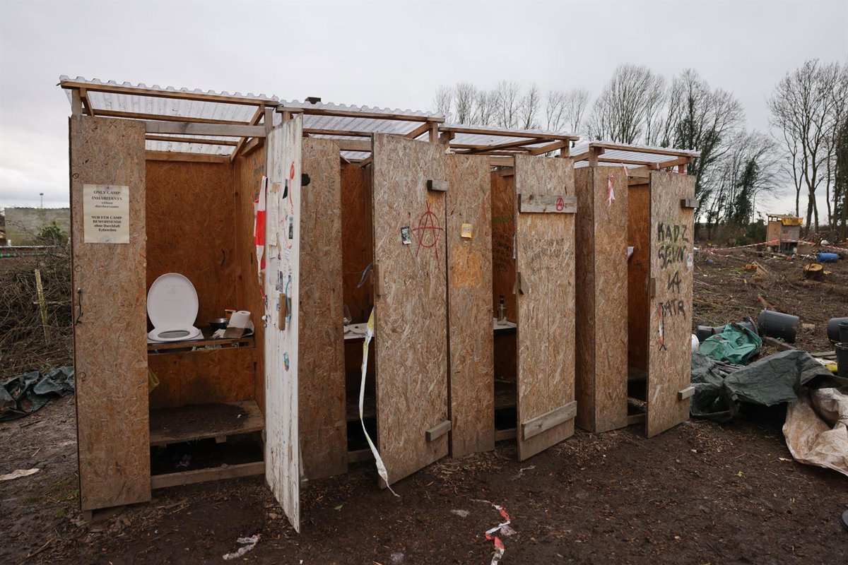 Durante los trabajos de demolición, una pequeña cabaña erigida en el campamento de protesta y que iba a ser expuesta en el Museo Alemán de Arquitectura ha sido destruida.