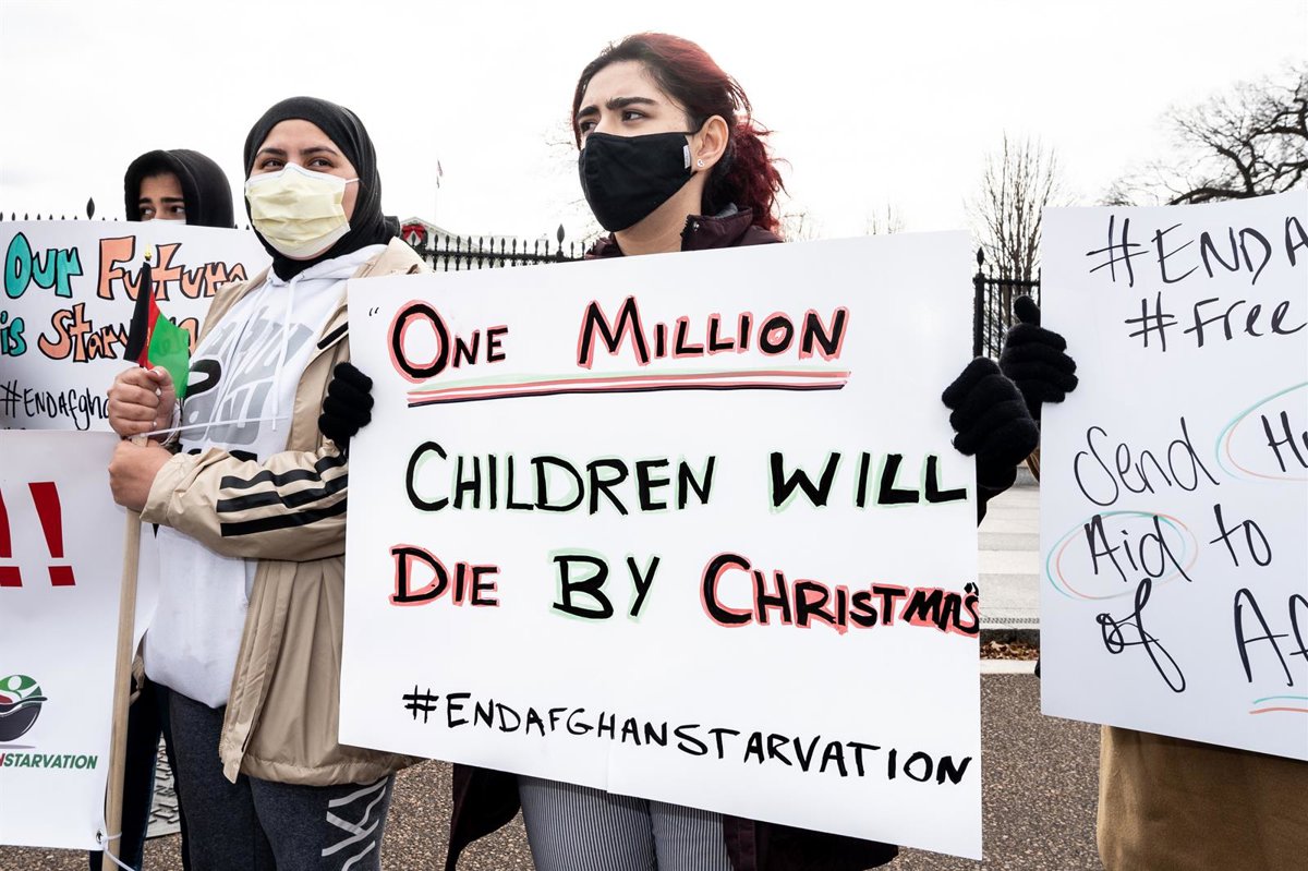 Una mujer protesta frente a la Casa Blanca contra el hambre en Afganistán. - MICHAEL BROCHSTEIN / ZUMA PRESS / CONTACTOPHOTO