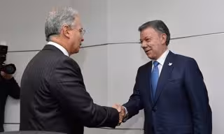 El senador colombiano Álvaro Uribe ha mantenido una reunión este sábado con el presidente colombiano, Juan Manuel Santos, y con el ministro de Defensa, Luis Carlos Villegas, en el que ha pedido que el nuevo acuerdo de paz con las Fuerzas Armadas Revolucionarias de Colombia (FARC) sea presentado a los sectores críticos antes de tener un alcance definitivo.