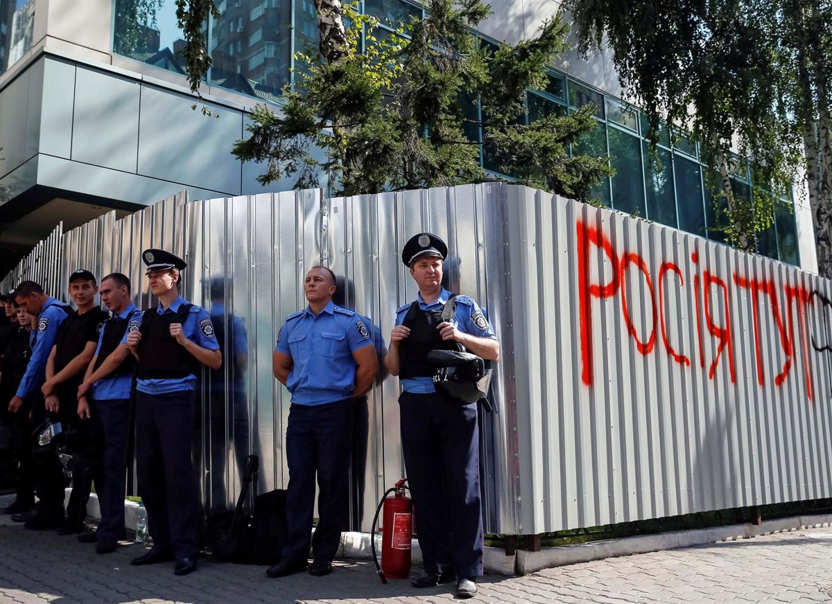 Alrededor de 20 individuos se congregaron frente a la sede de la cadena, a la que acusan de simpatizar con las actividades del Kremlin en Ucrania. Los manifestantes prendieron fuego a neumáticos y tiraron bombas de humo al edificio y provocaron un incendio que afectó al primer y segundo piso.