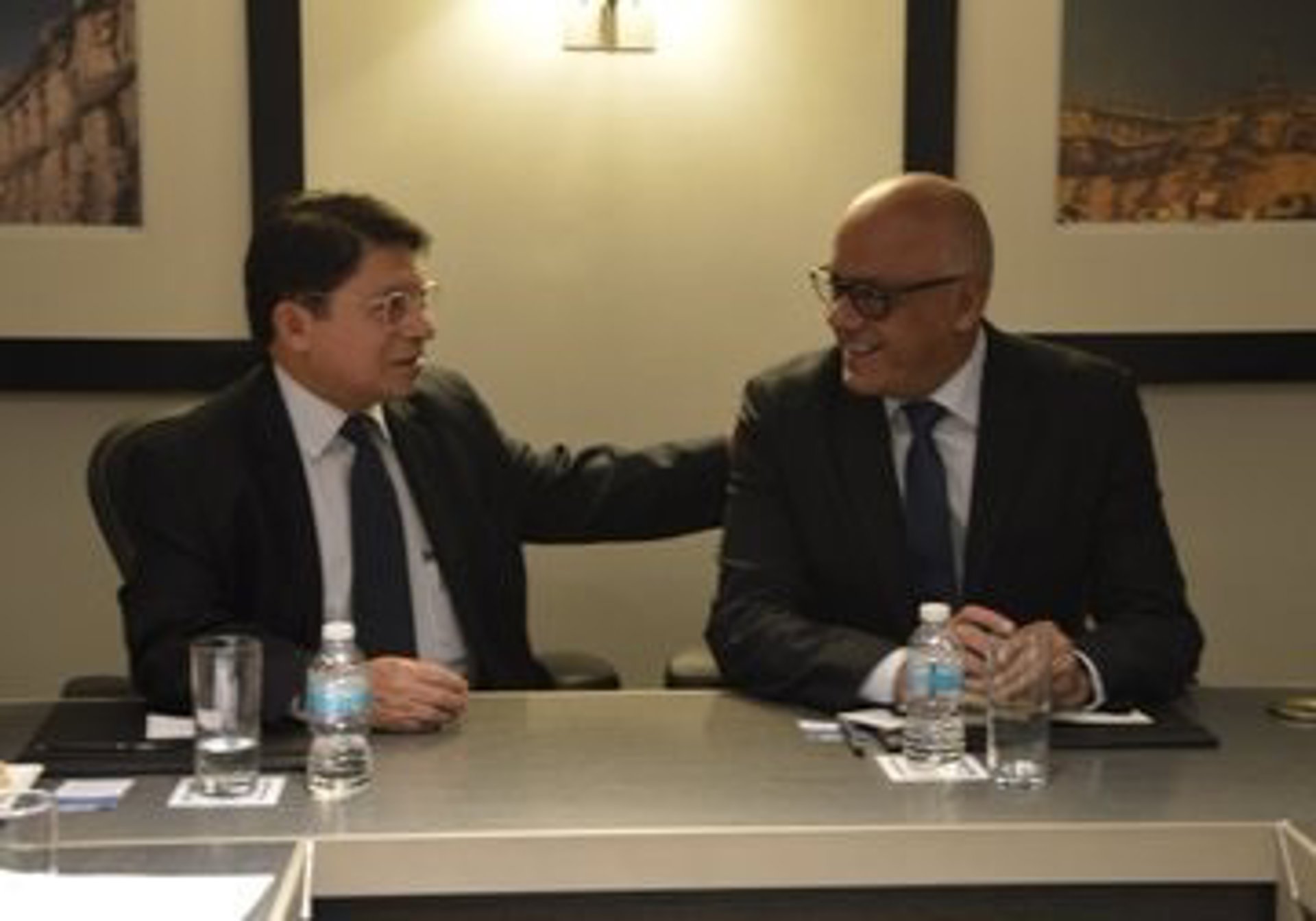 El ministro de Exteriores de Nicaragua, Denis Moncada, y el vicepresidente venezolano Jorge Rodríguez