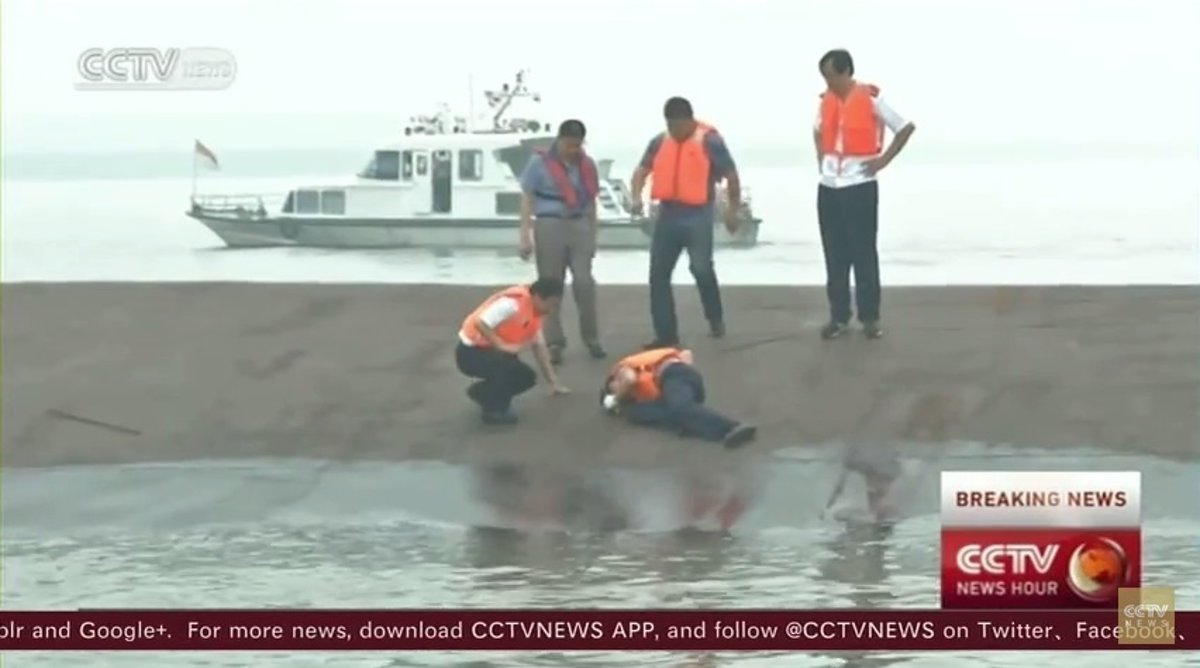 Un vídeo publicado por la cadena pública CCTV muestra las labores de rescate de los equipos de emergencia trabajando en el río Yangtsé, en China, en donde este martes ha naufragado un barco que viajaba con 458 personas a bordo.