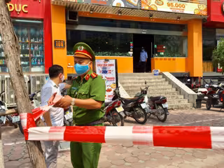 Archivo - Un policía de Vietnam acordona la zona en la que se confirmó un brote de coronavirus en una pizzeria de Hanoi. - XINHUA NEWS / CONTACTOPHOTO - Archivo