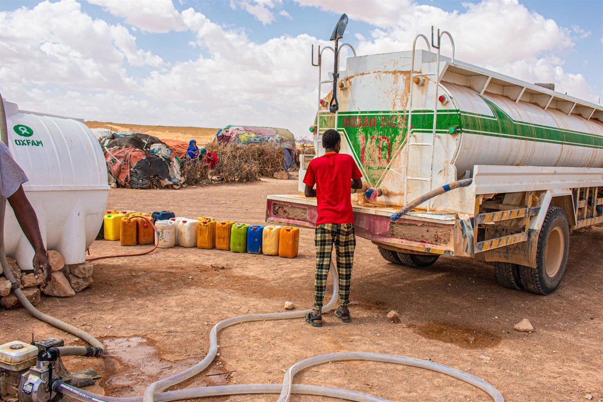 Archivo - Un camionero entregando agua a las personas desplazadas en el campo de desplazados internos de Galidle, en Somalia. - OXFAM INTERMÓN - Archivo