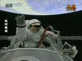 "Me siento bien, y saludo al pueblo chino y a la gente de todo el mundo", declaró Zhai mientras abandonaba la Shenzhou VII, la tercera nave espacial tripulada del país asiático, ataviado con el traje espacial Feitian, de fabricación china.