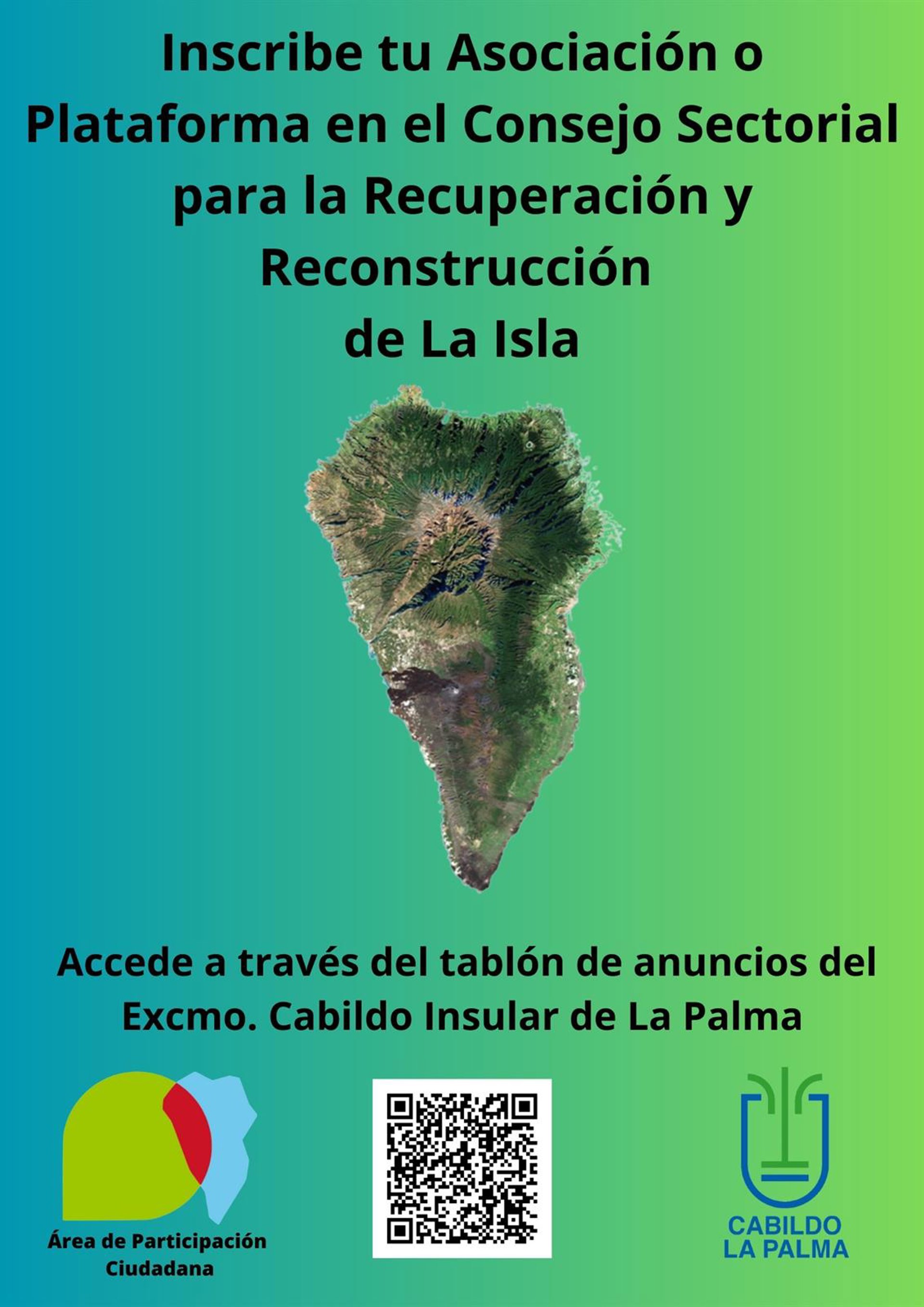 El Cabildo de La Palma, a través de la Consejería Participación Ciudadana, ha abierto el plazo de inscripción en el Consejo Sectorial para la recuperación y reconstrucción de La Palma hasta el 1 de junio.