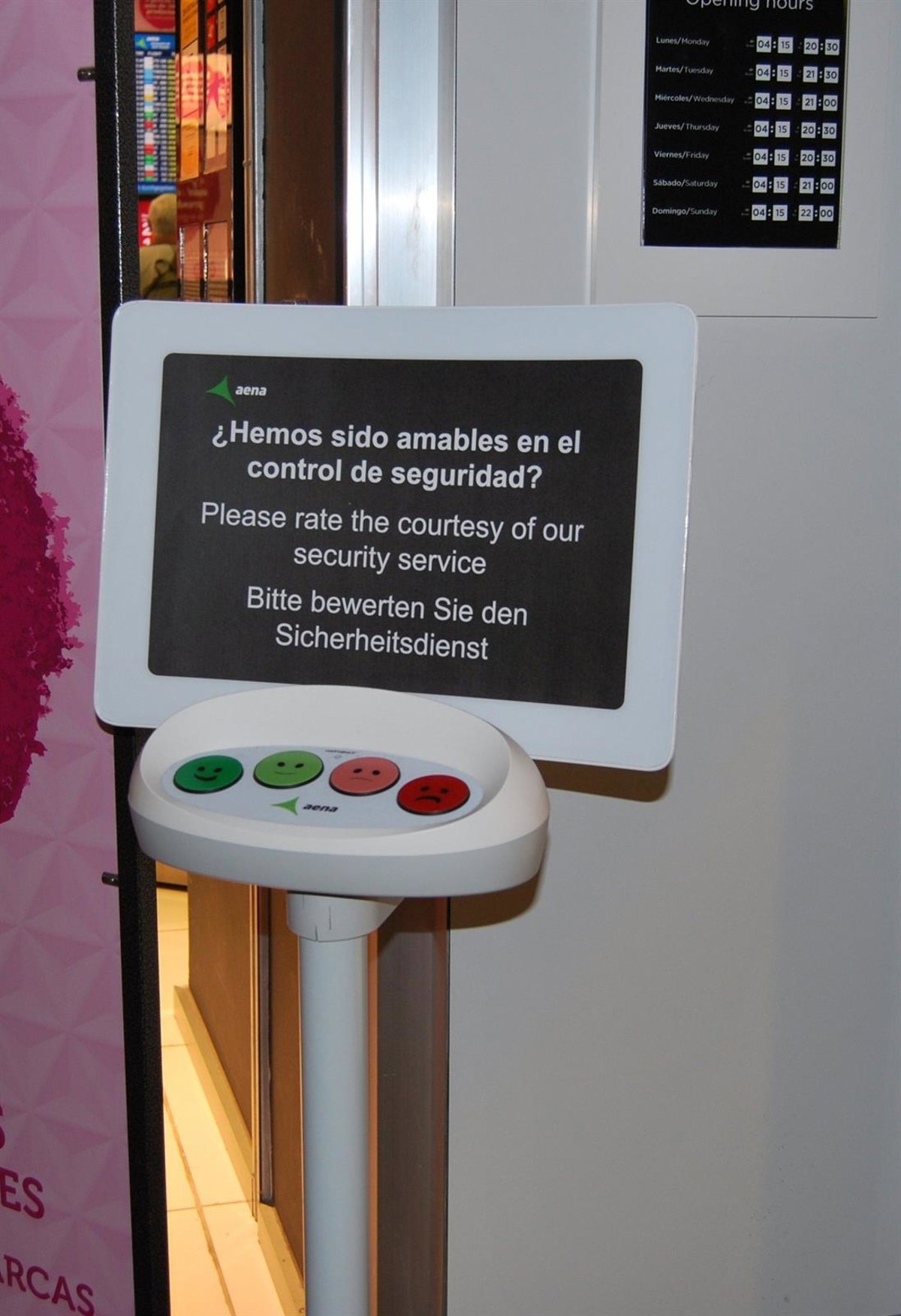 Estos dispositivos están dotados con 4 botones de colores, que se han ubicado en filtros de seguridad, salas de recogida de equipajes y en aseos, donde el pasajero puede dejar constancia de su satisfacción por el trato o servicio recibido con solo pulsar uno de estos botones, según informó Aena en nota de prensa.