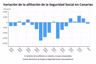 Los afiliados a la Seguridad Social han descendido en Canarias en 478 personas en el mes de mayo, lo que ha implicado una caída del 0,06 por ciento con respecto al mes anterior, y alcanza así los 809.644 cotizantes.