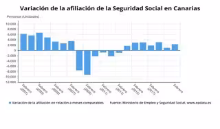 Variación de afiliados a la Seguridad Social en Canarias en febrero - EUROPA PRESS