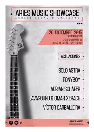 Tras la presentación, Aries Music contará con la actuación de la banda Solo Astra, así como de Ponyboy (proyecto en solitario del cantante de Isolina), Adrián Schäfer (Indie Folk) y Lavasound + Omar Xerach (reggae). El cierre vendrá de la mano de Dj Víctor Carballeira, antiguo dueño de la sala santacrucera Banda Aparte.