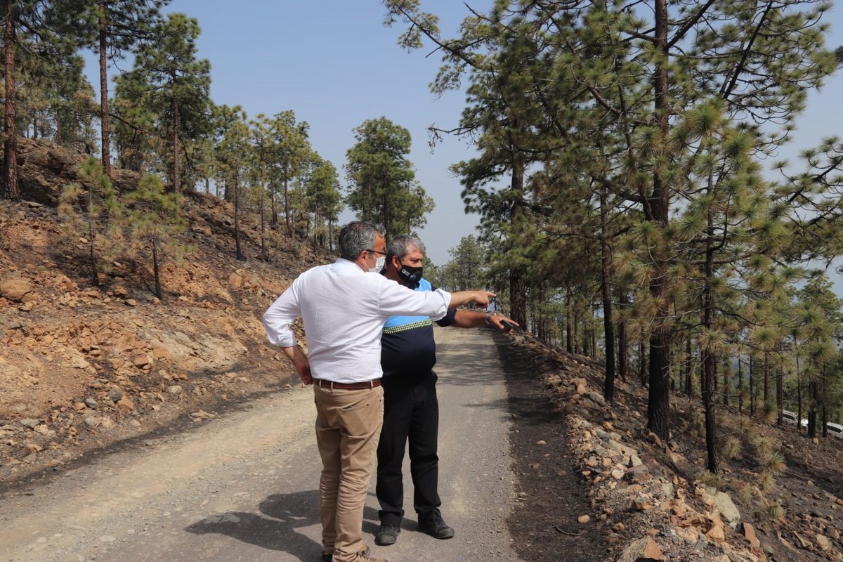 El primer edil señaló que el fuego ha afectado a las extensiones de terreno, al suelo y al sotobosque, sin perjudicar a las copas de los pinos. "El daño ambiental es importante, pero sabemos que el pino canario tiene unas condiciones óptimas para la recuperación", dijo.
