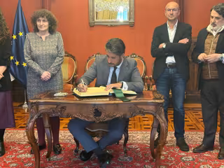 Luis Yeray Gutiérrez ya mantuvo a finales de abril un encuentro con la alcaldesa de Santiago de Compostela, Goretti Sanmartín, y varios miembros de la Corporación municipal para avanzar en el traspaso de la presidencia del Grupo, que asumirá la capital gallega a partir del próximo 1 de julio. El encuentro tuvo lugar en el Pazo de Raxoi, donde el alcalde firmó en el libro de honor de la ciudad.