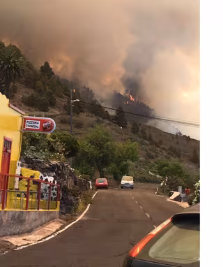 El incendio se ha originado en una ladera bastante pronunciada, entre dos barrancos, y está afectando principalmente a pinar y matorral bajo. Se trata de un espacio natural protegido con bastante pinocha, que está actuando como combustible.
