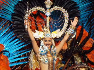 Noemí Hormiga Almenara con el disfraz 'Samba' consiguió el título de tercera dama de honor. Su diseñador es Jorge González Santana y representa a Fecao, Federación Empresarial Canaria de Hostelería, Ocio, Servicios y Comercio.