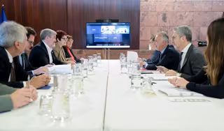El presidente de Canarias, Fernando Clavijo (3i), el ministro de Política Territorial y Memoria Democrática, Ángel Víctor Torres (3d), y el secretario de Estado de Política Territorial, Arcadi España (2d), durante una reunión interministerial en Tenerife - Estefanía Briganty - Europa Press