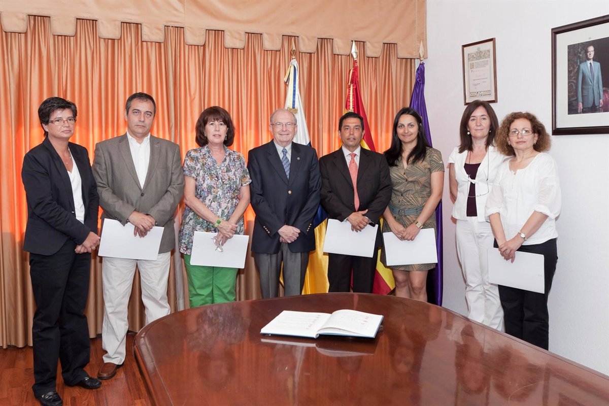 El profesor Ángel Chinea Martín ha tomado posesión este martes como director de la Escuela Universitaria de Ciencias Empresariales en un acto celebrado en la sala de juntas del Rectorado de la Universidad de La Laguna. Le acompañarán en el cargo Carmen Reyero como subdirectora de Movilidad y Relaciones Corporativas; Andrés Lorente como subdirector de Organización Docente; Raquel Martín, subdirectora de Alumnado y Prácticas Externas; Andrea Martín, secretaria del centro, y, finalmente, Pilar Pérez como coordinadora de Calidad e Innovación Educativa.