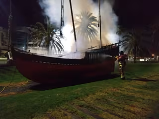 La réplica de la carabela de La Niña III, de Cristóbal Colón, que estaba ubicada en la trasera del parque de Santa Catalina de Las Palmas de Gran Canaria ha ardido en la madrugada de este miércoles.