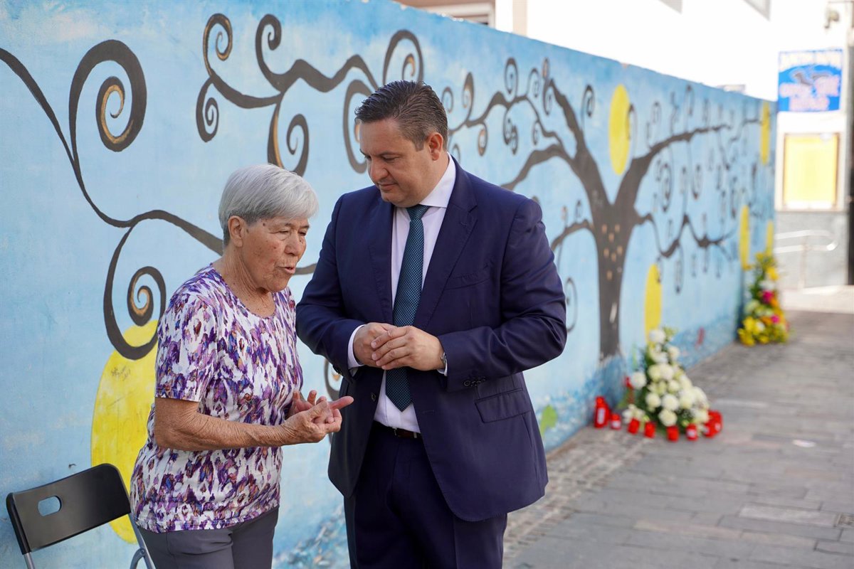 La presidenta de la comunidad de propietarios del edificio Julián José y el alcalde de Arona, José Julián Mena, en el séptimo aniversario del derrumbe - AYUNTAMIENTO DE ARONA