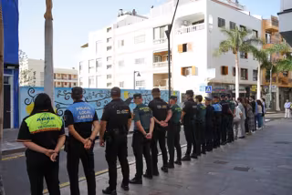 La alcaldesa de Arona, Fátima Lemes, ha presidido este emotivo acto acompañada por varios miembros de la Corporación municipal, la que fuera presidenta de la comunidad de vecinos del edificio, Ánima Marrero, así como miembros de los cuerpos de seguridad, Guardia Civil, Policía Nacional, Policía Local, Protección Civil, entre otros.