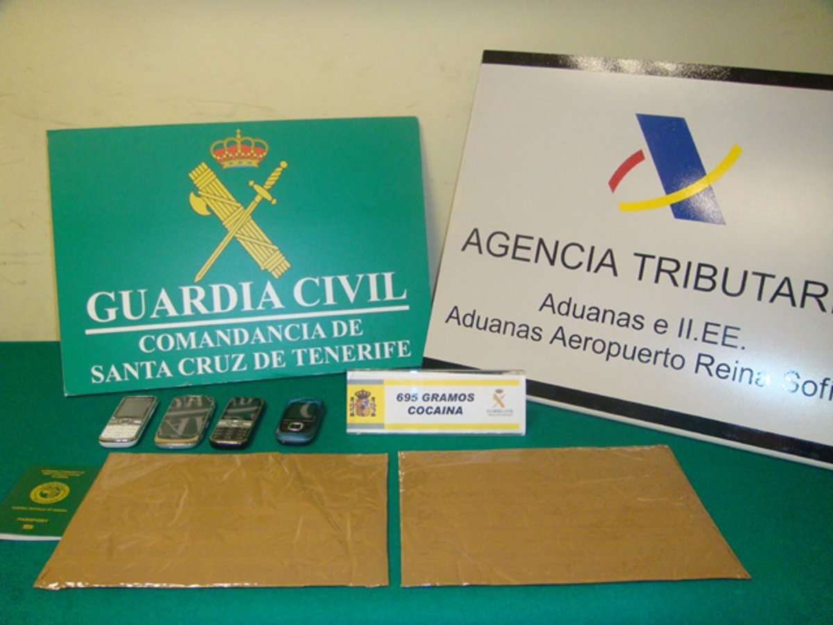Un hombre de 40 años, natural de Nigeria y vecino del municipio tinerfeño de Guía de Isora, ha sido arrestado en el aeropuerto Reina Sofía con 695 gramos de cocaína en un portafolio, según ha informado en un comunicado la Guardia Civil.