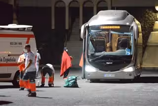 Los migrantes suben a una guagua tras llegar a El Hierro - Europa Press