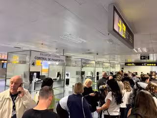 De las cuatro cabinas dobles para el control de pasaportes, con capacidad para ocho agentes, solo había dos de servicio, lo que generó "una cola de más de una hora por la acumulación de la llegada de vuelos del Reino Unido", señala.