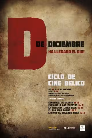 El Aula de Cine de la Universidad de La Laguna (ULL), dependiente del Vicerrectorado de Relaciones Universidad y Sociedad, retoma su actividad este mes de diciembre con un ciclo de una semana dedicado a películas adscritas al género bélico titulado '¡Ha llegado el día D!', una actividad que está organizada en colaboración con el Ayuntamiento de La Laguna y cuyas proyecciones se celebrarán en la biblioteca del antiguo convento de Santo Domingo a partir de las 17.30, con entrada libre y gratuita.