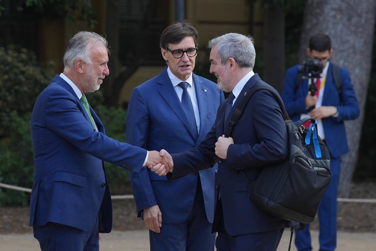 El ministro de Política Territorial, Ángel Víctor Torres; el presidente de la Generalitat de Cataluña, Salvador Illa y el presidente de Canarias, Fernando Clavijo, a su llegada a la XXVIII Conferencia de Presidentes - David Zorrakino - Europa Press