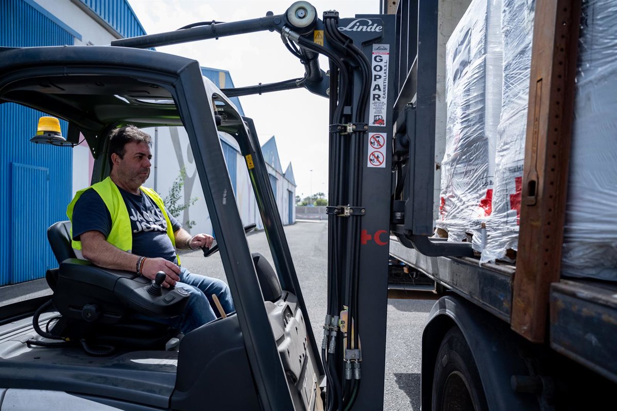 Archivo - Una persona descarga toneladas de ayuda humanitaria para Turquía en el Centro de Cooperación con África, a 20 de febrero de 2023, en Las Palmas de Gran Canaria, Gran Canaria, Canarias (España). Cruz Roja organiza el envío de 105 toneladas de a - Europa Press - Archivo