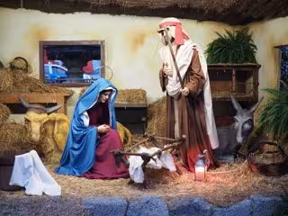 La estampa recrea una representación tradicional, protagonizada por las esculturas de María y José, arropadas por el buey y la mula. El nacimiento se completará a partir del 25 de diciembre, en la festividad de Navidad, con la incorporación de la imagen del Niño Jesús.