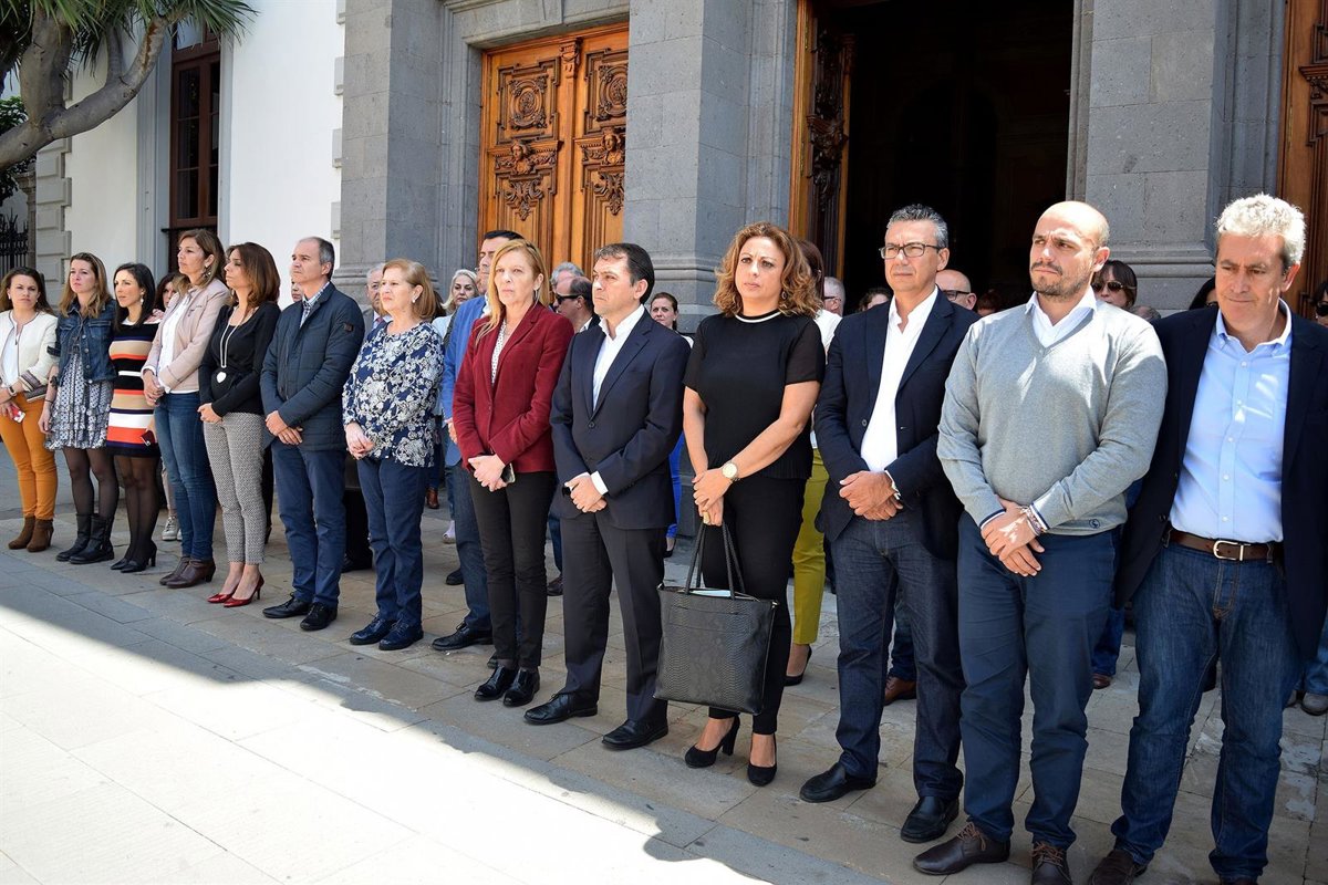 Con el alcalde, José Manuel Bermúdez, al frente, y la presencia de la subdelegada del Gobierno en la provincia de Santa Cruz de Tenerife, María Rosario Cabrera, y la vicepresidenta segunda del Cabildo Insular, Cristina Valido, concejales y personal de la corporación santacrucera mostraron su repulsa ante este hecho.