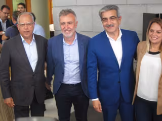 Rodríguez (tercero por la izquierda), tras el acuerdo en Canarias - EUROPA PRESS