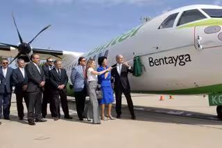BinterCanarias ha bautizado hoy en el aeropuerto de Gran Canaria uno de sus aviones con el nombre Bentayga, la denominación que recibió más votos en el concurso online 'Pontunombreaqui.com' puesto en marcha por la aerolínea.