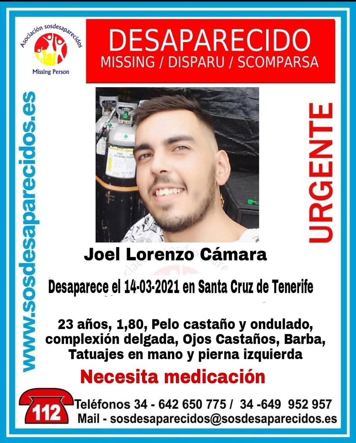 La asociación 'sosdesaparecidos' ha lanzado un mensaje de ayuda para tratar de localizar a Joel Lorenzo Cámara, un joven de 23 años desaparecido en Santa Cruz de Tenerife, según ha informado a través de sus cuentas oficiales de Twitter.