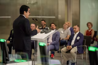 El presidente del Cabildo de Tenerife, pedro MArtín, en un encuentro con empresarios para explicar el nuevo proyecto del aeropuerto Tenerife Sur - CABILDO DE TENERIFE
