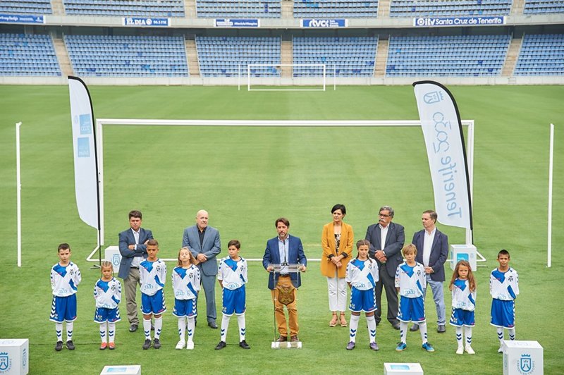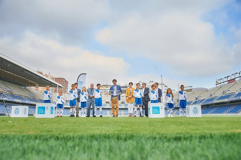 El acto de presentación del convenio realizado hoy miércoles ha contado con el presidente del Cabildo, Carlos Alonso; el presidente del CD Tenerife, Miguel Concepción; el consejero del área Tenerife 2030, Antonio García Marichal, la consejera de Deportes, Cristo Pérez; el director general del CD Tenerife, Pedro Rodríguez Zaragoza, y el consejero delegado de Ideco, Eusebio Díaz.