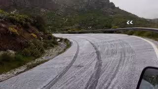 Apenas queda un 20 por ciento del granizo caído en la jornada de este sábado, perceptible en las cunetas y en manchas salteadas en las laderas. No obstante, la temperatura es muy baja y cabe la posibilidad de que hielen las vías en alguna zona, por lo que la precaución en esta jornada debe ser máxima.