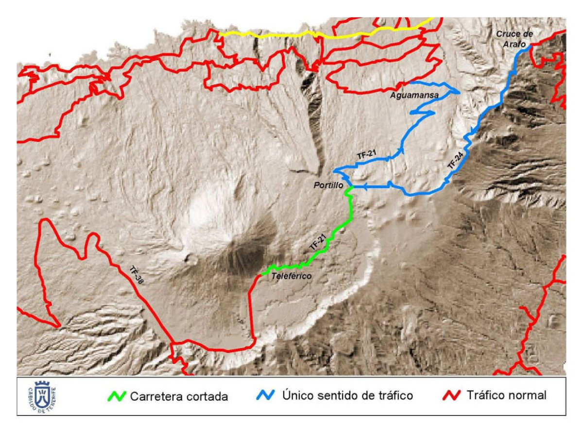 A partir de ese punto los vehículos deberán transitar únicamente en dirección a La Orotava, dado que a partir de Aguamansa no será posible el desplazamiento hacia el Teide. Podría suceder también que la meteorología obligue a cerrar las carreteras a causa de la nieve o placas de hielo, por lo que es imprescindible que los ciudadanos se informen antes de salir en el teléfono del Centro de Información de Carreteras (CIC) 900210131.