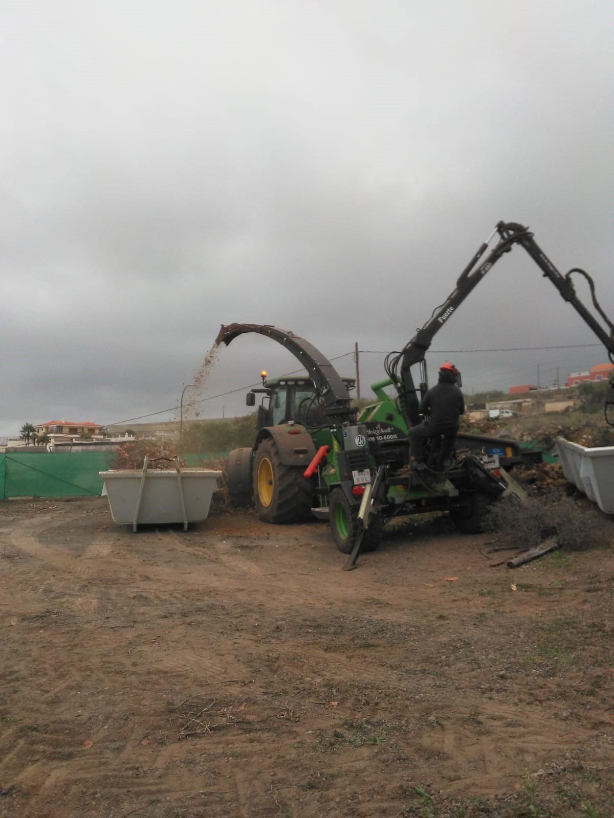 Trabajos de trituración de restos de poda de afectados por la termita subterránea - CABILDO DE TENERIFE
