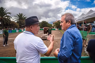 El consejero de Sector Primario del Cabildo de Tenerife, Valentín González (d), en una feria de ganado - CABILDO DE TENERIFE